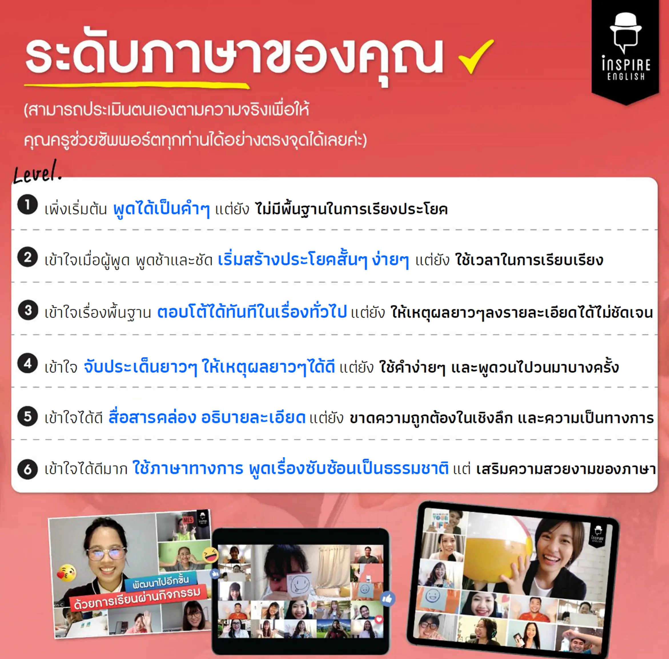 สอบถามรายละเอียดเพิ่มเติม โทร: 086 445 9536 / Email: customer.service@inspire-english.in.th